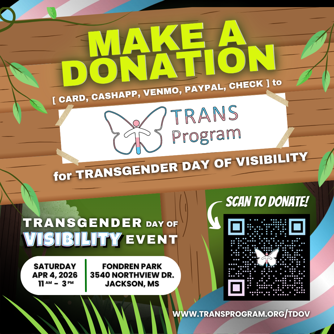 This event will highlight transgender people and ALL of their value, allowing for storytelling and connection through conversation, tabling, entertainment and service. Attendees will have the opportunity to support transgender vendors (representing trans-owned crafts, services, businesses and organizations), enjoy live entertainment by transgender artists, gather resources on how to better serve and advocate for the transgender community, pick up FREE clothing and accessories (Trans Closet), and more. FREE food options will be available (while supplies last) and other fair-style foods will be available for purchase, as a fundraising opportunity for the TRANS Program. We’ll have activities for kids and adults, alike! The event will feature a hands-on activity and our annual “Visibility Runway”, where all will have the opportunity to grace the stage and BE VISIBLE. TDOV is a fun and purposeful event for the whole family.